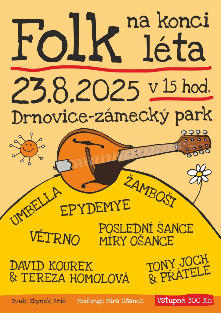 Skupina Umbella ve spolupráci s obcí Drnovice pořádá 9. ročník festivalu "Folk na konci léta" a to v sobotu 23.srpna od 15.00 v Zámeckém parku v Drnovicích
