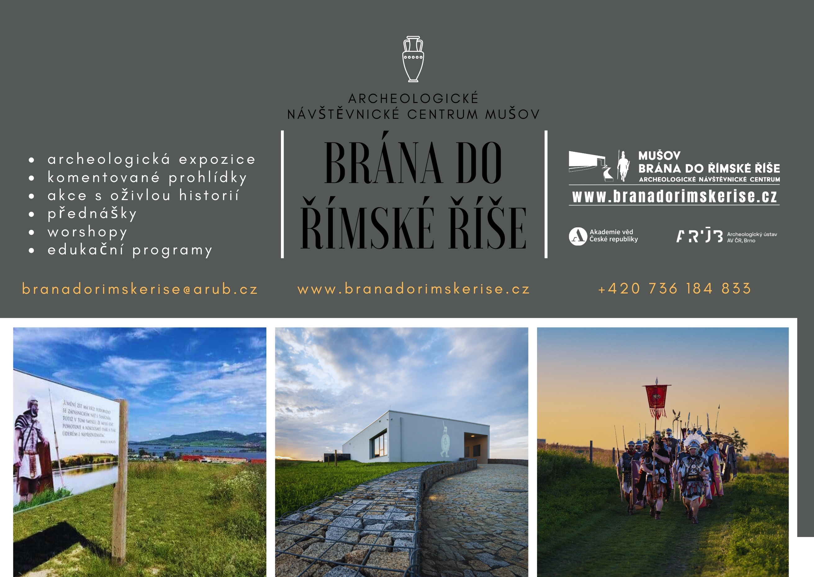 Dovolujeme si Vás srdečně pozvat do archeologického Návštěvnického centra Mušov – Brána do Římské říše, které se nachází v obci Pasohlávky na severním břehu vodního díla Nové Mlýny, v blízkosti archeologické lokality a kulturní památky Hradisko u Mušova. Tato lokalita je významná svými archeologickými nálezy z období doby římské a nabízí jedinečný pohled do historie našeho území.